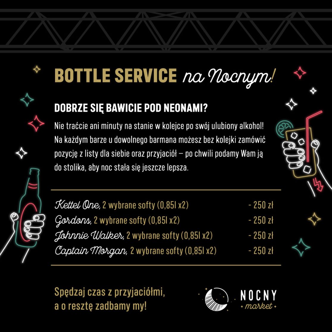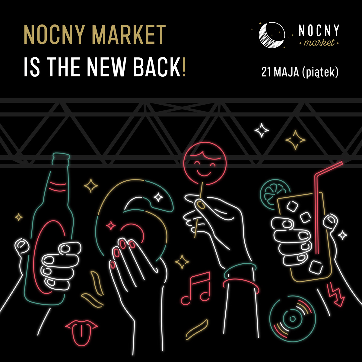 Nocny Market to sezonowe, weekendowe wydarzenie kulinarno-kulturalne organizowane na nieużywanych peronach dawnego Dworca Głównego. Jego inspiracją są azjatyckie night markety — surowe betonowe perony z kolorowymi neonami i zapachami street foodu – tworzą unikatowy, „undergroundowy” miejski vibe. Nocny Market to dziesiątki stoisk i food trucków oferujących szeroki wachlarz smaków: azjatyckie pierożki, ramen, tacos, burgery, świeże lody i inne.