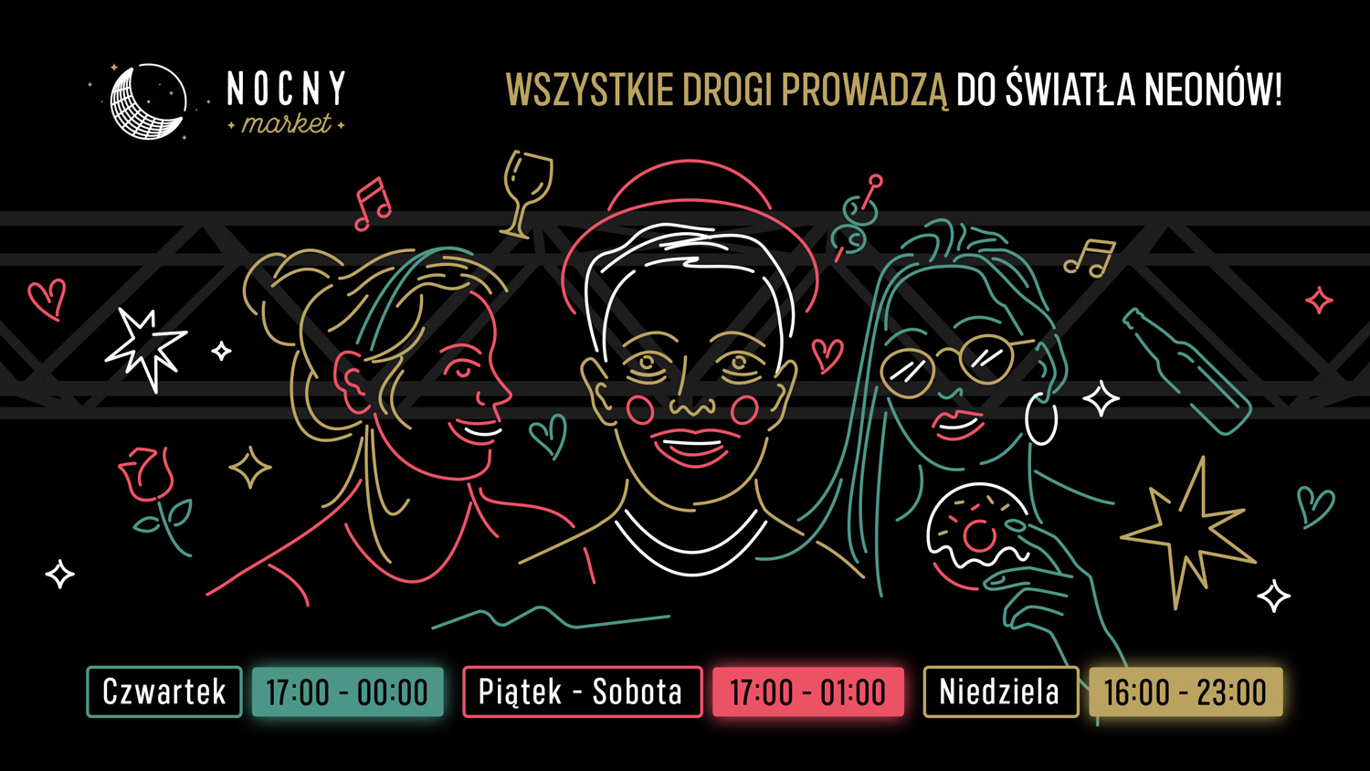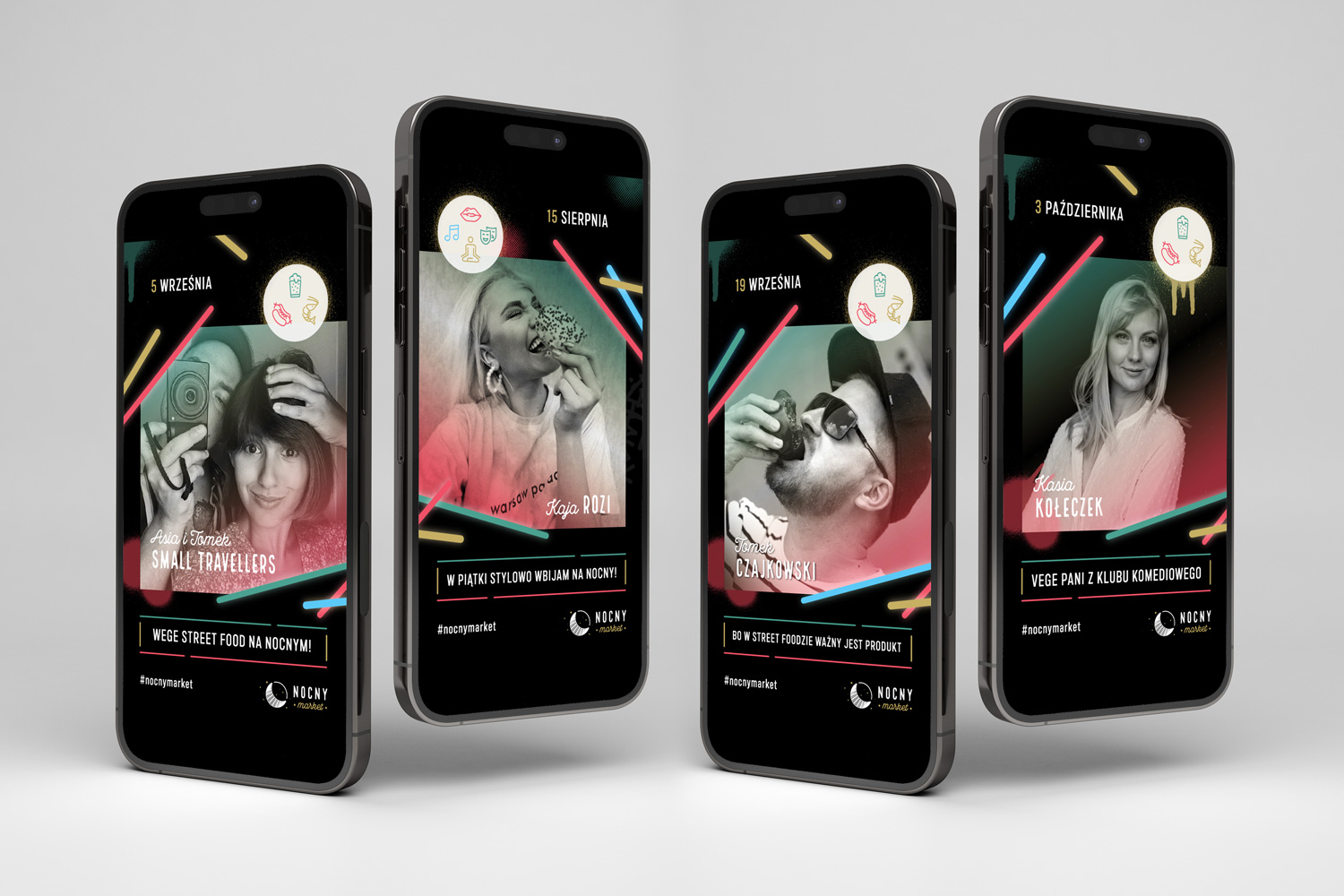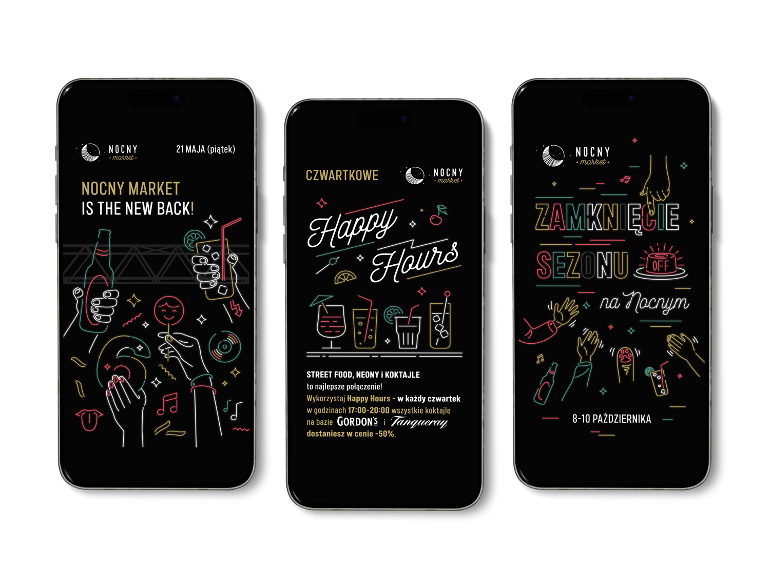Logo Nocnego Marketu powstało w 2016 roku, a przez kilka sezonów projektowałem całą masę grafik: od kev visual’i dla poszczególnych wydarzeń, po grafiki informacyjne, wayfinding, elementy przestrzenne.
